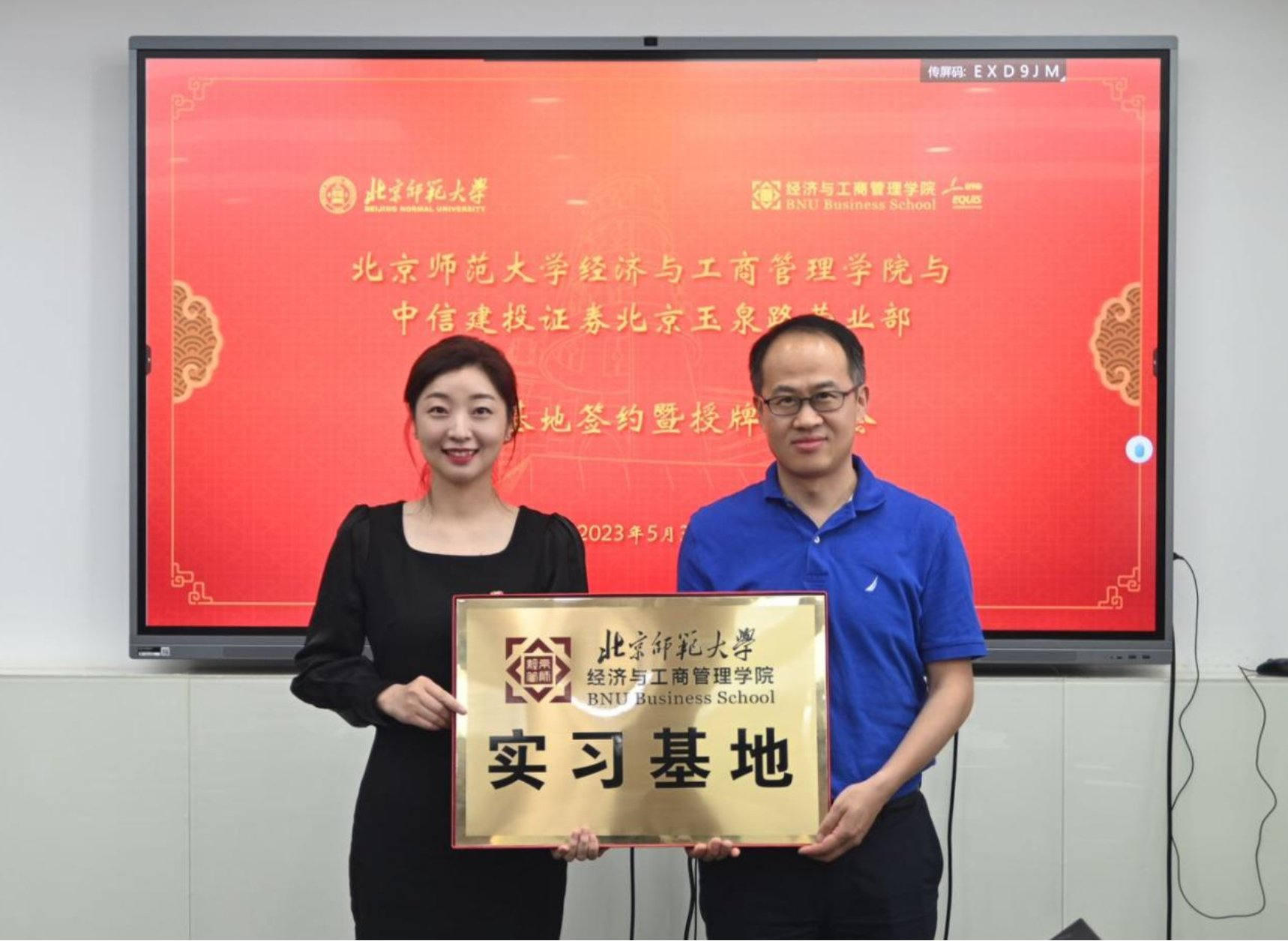 孙志军代表学院向中信建投证券北京玉泉路营业部授予“实习基地”牌匾,签约授牌仪式圆满完成。