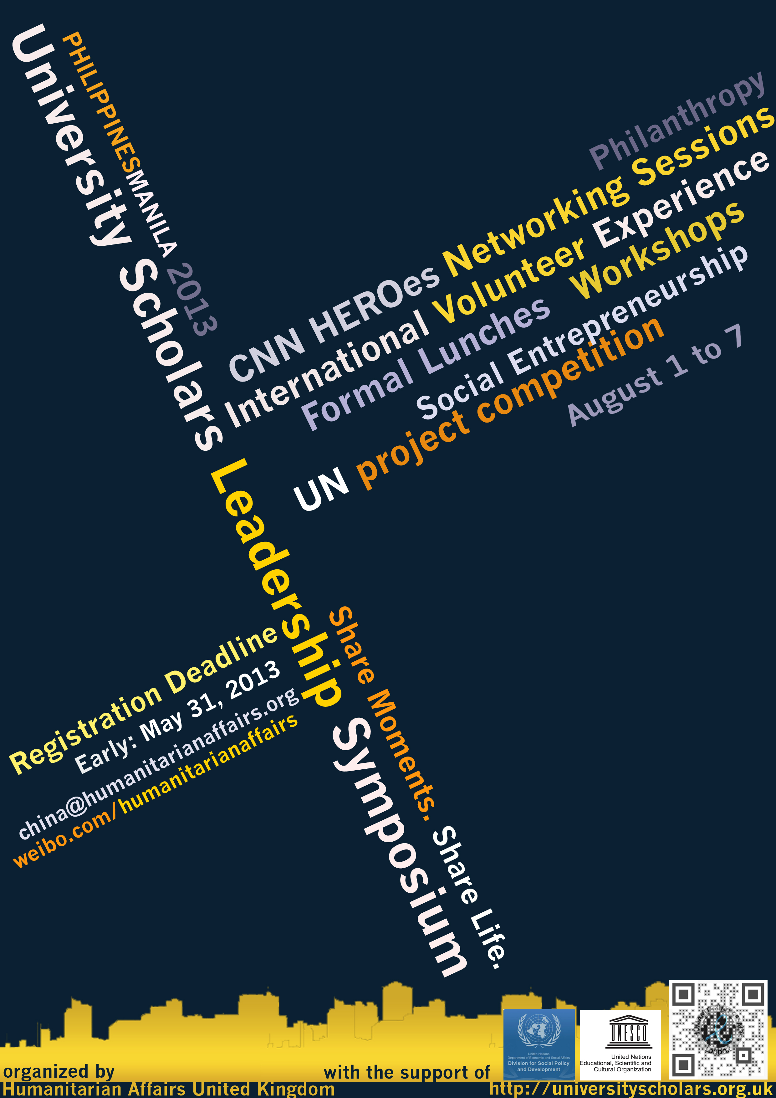 北京师范大学通过选拔将参与今年的全球青年领袖论坛,此届论坛是菲律宾政府,联合国经济和社会事务部(UN DESA)以及联合国人道主义事务协调办公室(OCHA)的支持下由英国公益事务机构主办的。会议旨在在国际竞争日益激烈下的今天为青年人提供在世界的舞台上获得认可与荣誉的机遇,提升青年人提升国际社会责任意识、自我推动力,以及领导能力。