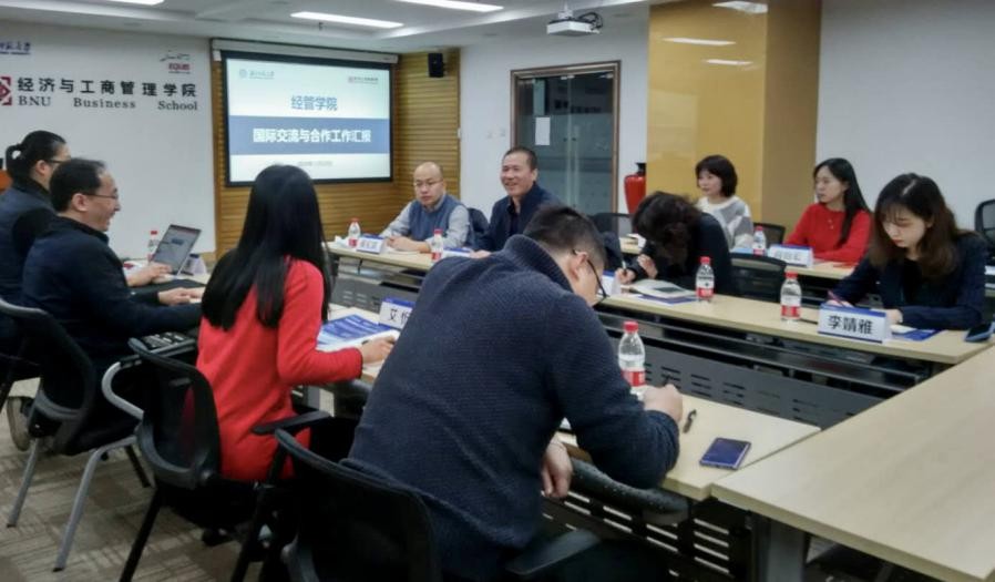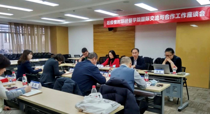首先,戚聿东院长对国际处长期以来给予学院国际交流与合作工作的指导和支持表示感谢,并介绍了学院近些年在国际交流与合作工作上的举措、成果以及未来规划。蔡宏波副院长补充介绍了学院国际交流与合作工作的整体架构,并提出学院努力推动实施学校“全球发展战略规划(2020-2025)”,正在利用国际经济组织合作平台项目进一步提升师生国际交流与合作水平和层次。随后,谢佳就学院国际交流与合作各个层面的具体工作进行了详细的汇报,并介绍了疫情时期国际交流与合作工作遭遇的困境和瓶颈。