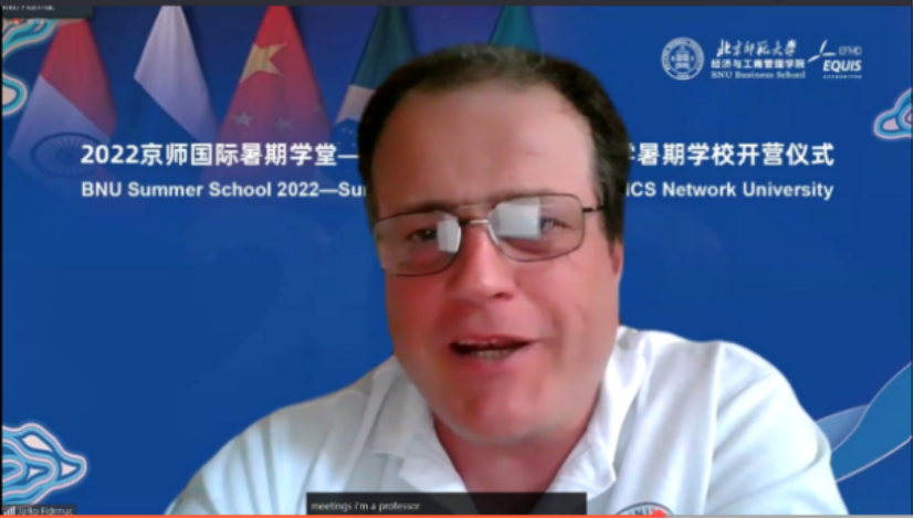 7月10日,2022京师国际暑期学堂—第三届金砖国家网络大学暑期学校开营式在线举行。北京师范大学副校长周作宇、国际交流与合作处处长吴玉军、bet365手机版 院长戚聿东、金砖国家合作研究中心主任王磊,美利坚大学商学院前院长Erran Camel,中国人民大学财政金融学院副院长张成思,湖南大学经济与贸易学院副院长徐航天,河南大学金融发展与风险评估中心主任Mark El-Shagi,法国里昂商学院亚洲校区校长顾问林桦,德国zeppelin大学经济学院院长Jarko Fidrmuc,俄罗斯高等经济学院大学国际合作中心副主任Maria Budrevich、伊比利亚美洲部主任Alina Shcherbakova,巴西坎皮纳斯大学孔子学院院长Bruno de Conti,乌拉尔联邦大学经济与管理研究生院学术委员会主任Zhanna Belyaeva,以及本次暑期学校来自13个国家和地区的87名学员参加了开营仪式。bet365手机版-bet365中文手机版下载 副院长蔡宏波主持仪式。