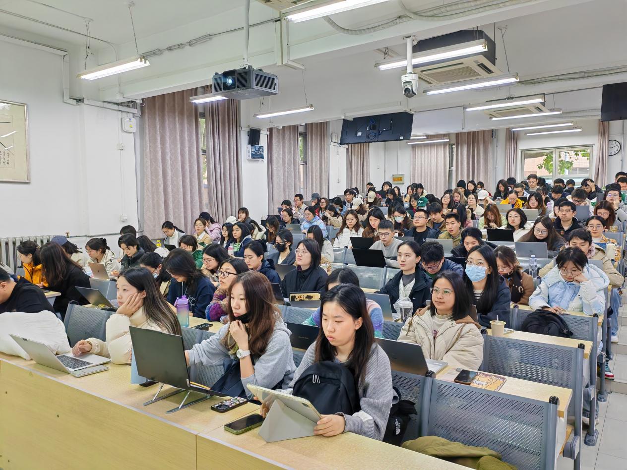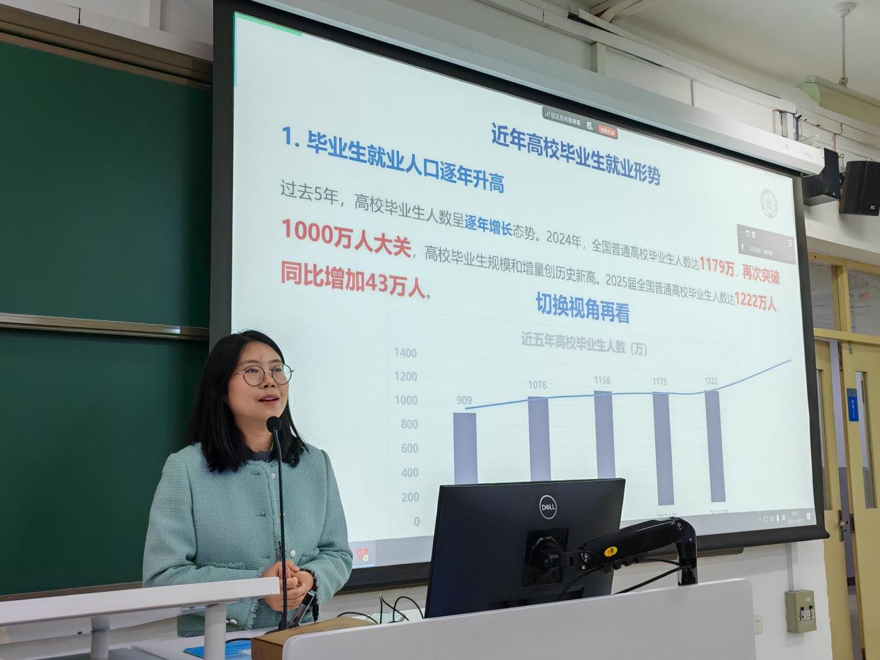 在教二108教室举办2026届毕业生就业政策宣讲暨动员会。我院本硕博毕业生300余人参加了此次宣讲会。学院党委副书记王骏、党委学工部职业发展与就业指导中心郭学茹出席会议,学院双肩挑辅导员李论主持并作政策解读。