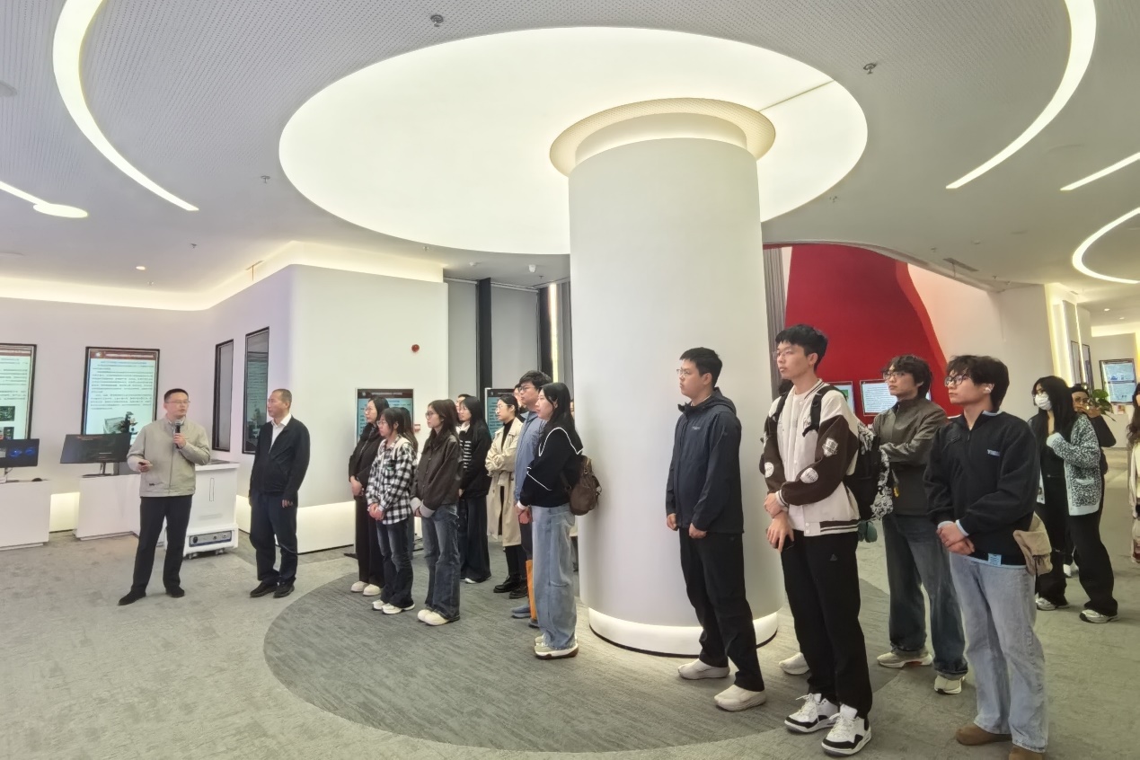 首先,学院师生进入中心展厅参观,跟随工作人员讲解,系统了解了中心的使命定位和战略任务,以及中心在国家创新体系中的重要作用。在颠覆性成果展区,师生重点关注中心在生命健康与先进制造领域的突破性成果。生命健康领域涵盖深脑成像微型化多光子显微镜、鲜活器官离体仿生养护系统等前沿技术,为疾病诊疗与康复提供全新方案;先进制造则聚焦滤波器、空中交互悬浮成像系统等新型创新产品,为解决国内外技术创新难题提供新思路。这些成果彰显中心以科学驱动抓机会、需求牵引建优势的创新逻辑,令师生直观感受到技术变革的产业价值。